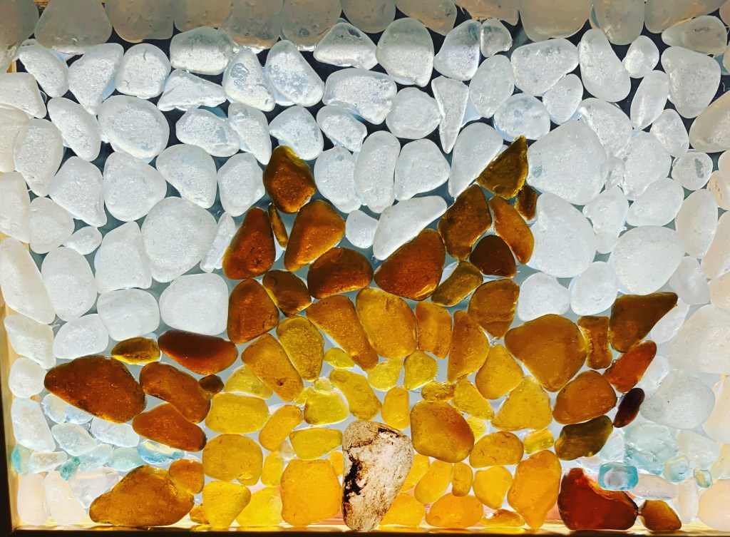 What was once discarded as trash is now a treasure. Glass broken, tumbled by waves among the pebbles and sand, becomes polished treasures.
